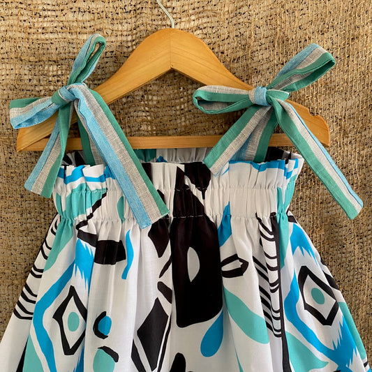 ABSTRACT PRINT FLOWY TIE UP DRESS